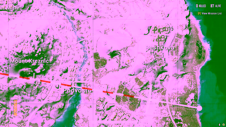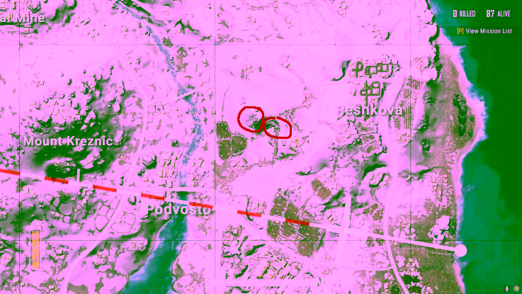 Seperti yang bisa kalian pada map di bawah, lokasi gua tersebut berada di antara kota Podvosto dan kota Peshkova. Dengan struktur yang tidak terlalu luas, di sini kamu memiliki 2 pintu yang tersedia yaitu di sisi selatan dan sisi barat map.