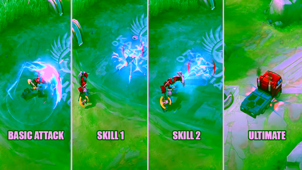Skill 1 X-Borg yang seharusnya mengeluarkan api, berubah menjadi sebuah kilatan petir berwarna kuning mengikuti warna dari Bumblebee.