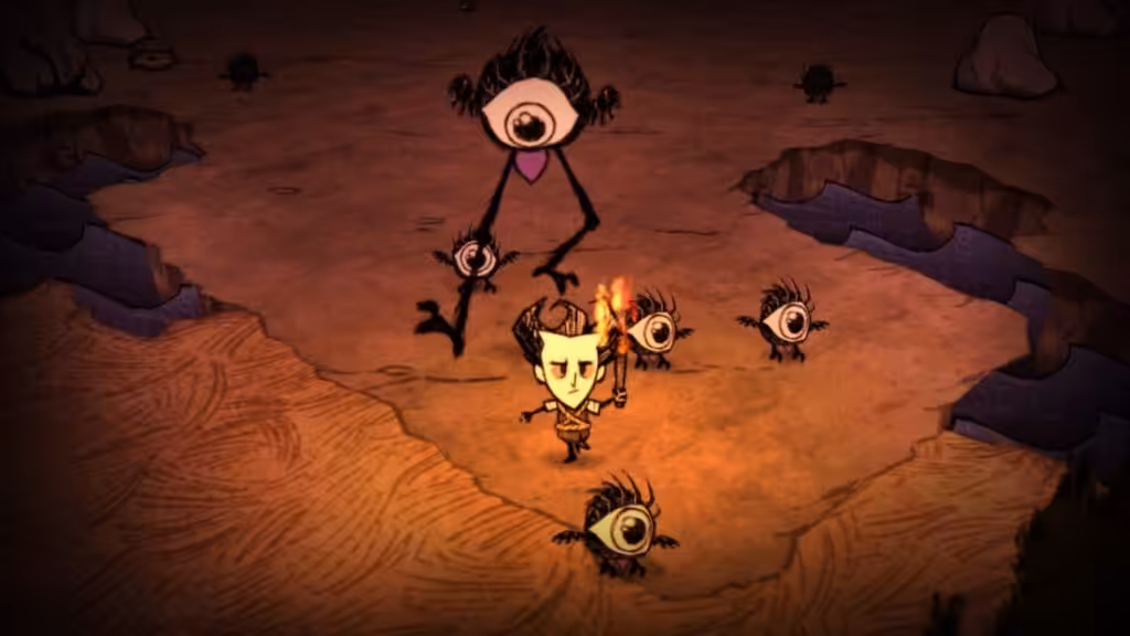 Don’t Starve sangat ikonik dengan gaya visualnya yang unik nan mencekam. Game ini mengharuskan pemain untuk bertahan hidup di dunia yang penuh dengan makhluk aneh. Yang namanya bertahan hidup, pastinya kamu akan ditantang dengan manajemen sumber daya.