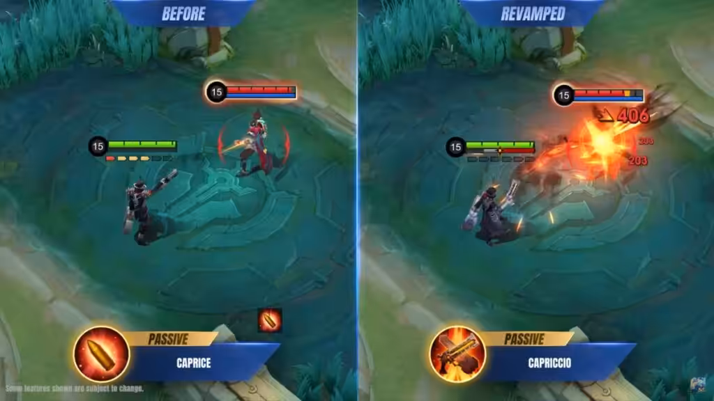 Selain itu Moonton juga menyesuaikan gameplay-nya agar lebih fokus menghasilkan serangan dengan skill dibandingkan basic attack. Perubahan ini juga diikuti dengan peningkatan mobilitas saat karakter ini mengeluarkan skillnya.