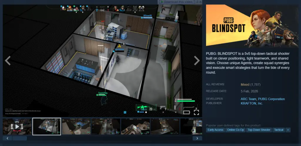 Review PUBG: Blindspot Steam – Tidak banyak yang menyadari bahwa game PUBG: Blindspot yang masih berkaitan dengan PUBG: Battlegrounds telah rilis sejak 5 Februari 2026 di Steam. Game tersebut menghadirkan permainan yang lebih berfokus pada Top Down Shooter Co-op Online dimana 2 tim yang terdiri 5 Player masing-masing bekerja sama mengalahkan tim lain dalam sebuah Stage.