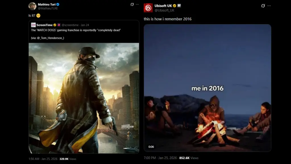 Tak hanya itu Ubisoft UK juga membagikan respon di akun Twitter/X mereka dimana akun tersebut kerap membagikan meme. Cuitan tersebut berisikan sebuah video meme “how i remember 2016” dengan memasukkan video cuplikan Watch Dogs 2.