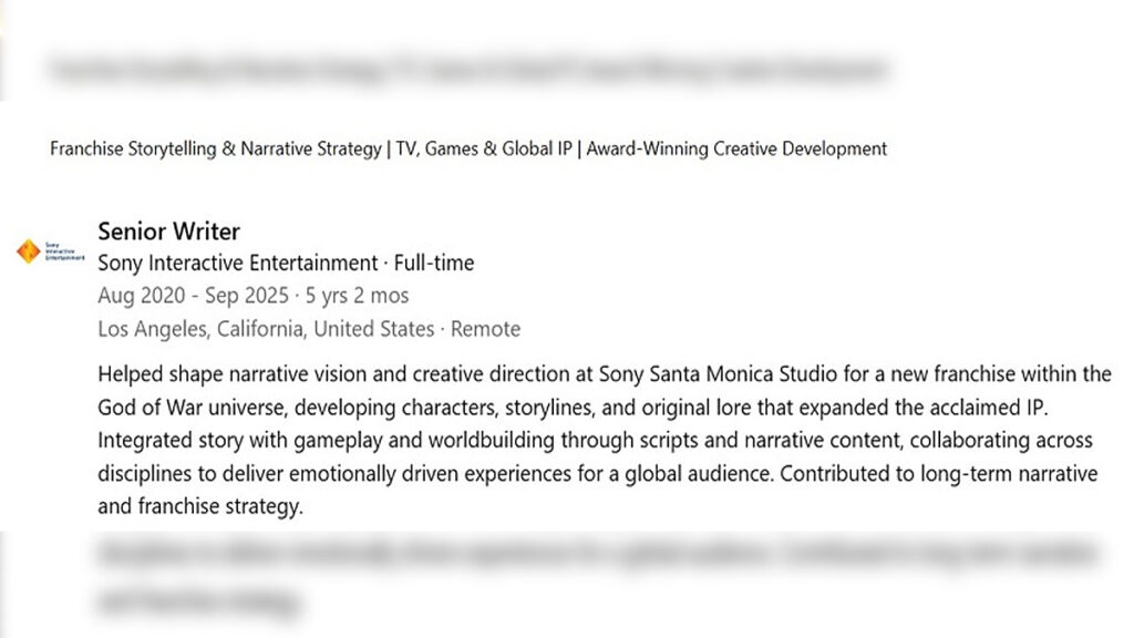 Melansir dari Resetera, salah satu writer Santa Monica telah menghabiskan waktu lima tahun hingga September tahun lalu untuk “membentuk visi naratif dan arah kreatif di studio untuk waralaba baru dalam semesta GoW“.