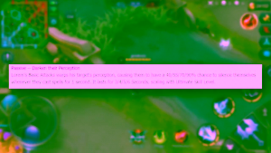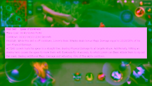 Hero yang memiliki nama Lorem – Warden of Darkness adalah seorang Fighter yang memiliki skill yang sangat luarbiasa dan akan menjadi hero yang sangat-sangat OP jika hadir di Mobile Legends. Hal yang membuat Lorem begitu luarbiasa adalah skill passivenya mampu memberikan efek silence selama satu detik, meskipun skill tidak selalu aktif setiap saat namun dengan kemampuan ini setiap hero musuh yang terkena serangan Lorem tidak dapat mengeluarkan skill. Untuk skill I, membuat Lorem sebagi hero yang memiliki crowd control yang luarbiasa, pasalnya serangan dari tombaknya akan memberikan efek stun dengan kerusakan magic damage. Skill II dari Lorem benar-benar tidak masuk akal, dikarenakan Lorem akan bersembunyi didalam bayangan hero musuh, sekaligus memberikan damage yang begitu mematikan, hal ini ditambah selama bersembunyi dalam skill ini Lorem menjadi immune terhadap semua serangan. Hal yang benar-benar membuat Lorem menjadi hero yang SUPER DUPER overpower adalah skill ultimatenya yang mampu membuat seluruh Map menjadi gelap selama 10 detik, selama skill ultimate ini aktif Lorem mampu menyerang semua musuh dengan mengaktifkan skill keduanya. Yang dapat diartikan saat skill ini aktif Lorem dapat memberikan damage terhadap semua musuh.