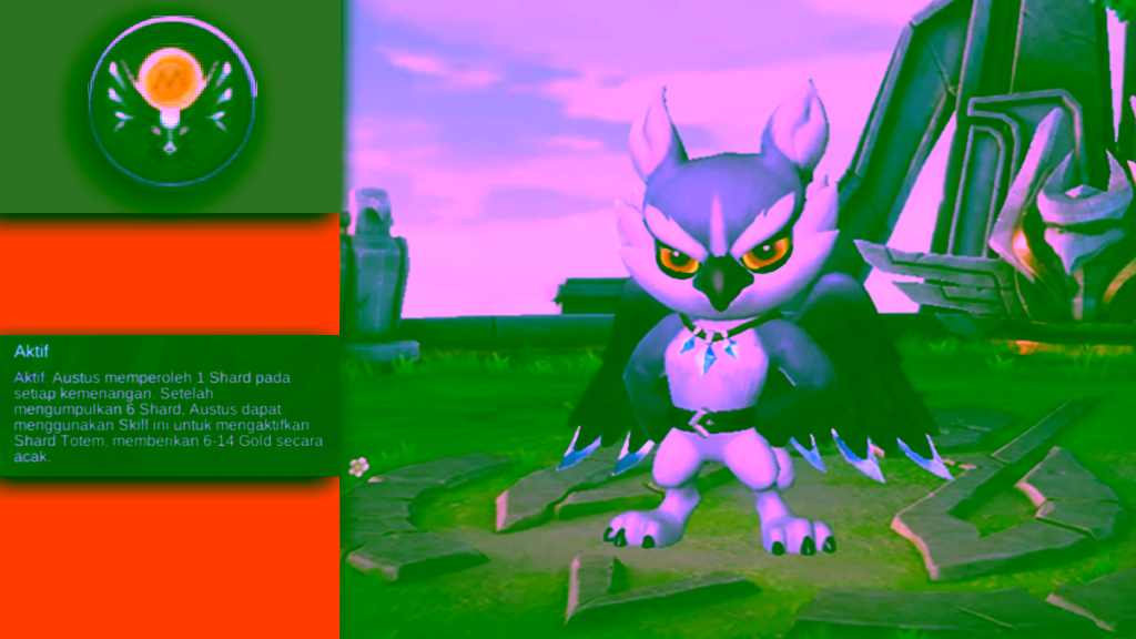 Skill ini merupakan skill aktif, dimana kalian membutuhkan beberapa syarat untuk mengaktifkannya. Ketika menggunakan skill ini, Austus akan mengumpulkan 1 Shard ke dalam Totem yang ada di dalam game ketika kalian meraih kemenangan.
