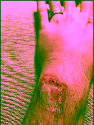 “Kami memanggil seorang perawat untuk melihat apakah kami harus dilihat dan dia memberi tahu kami bahwa kami harus pergi ke UGD karena lukanya putih dan sudah melepuh”.