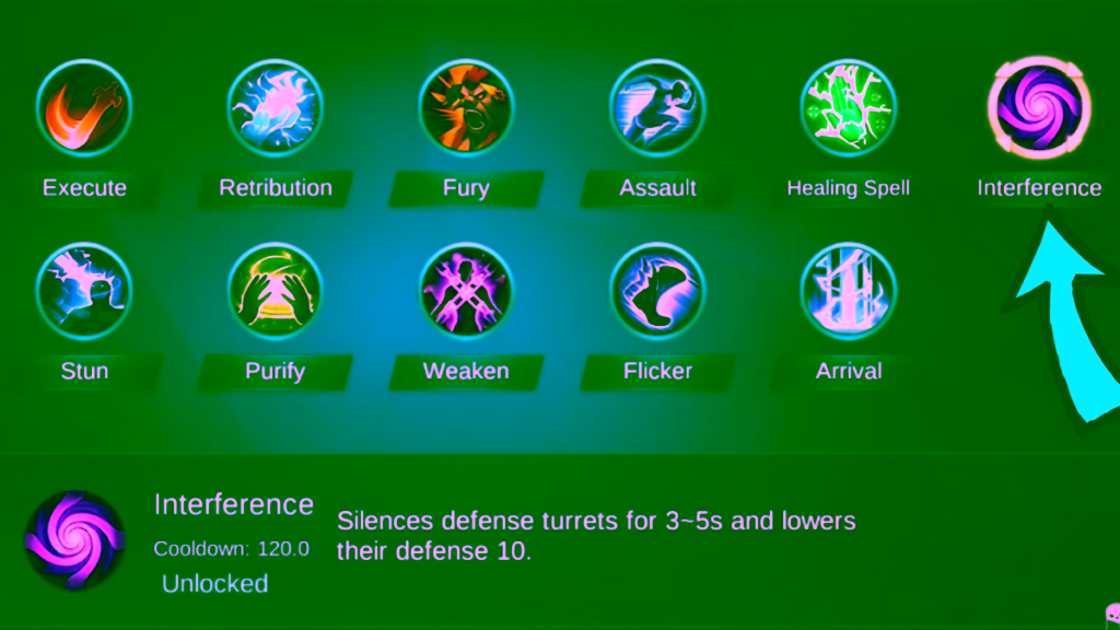 Spell tersebut pastinya sangatlah kuat dan harus dihapuskan. Pasalnya, Turret merupakan salah satu tempat bagi Hero untuk berlindung dari musuh. Dengan adanya Spell Interference yang akan membuat Turret tidak dapat melindungi kita, maka musuh akan sangat mudah untuk ganking ke arah kita ya.
