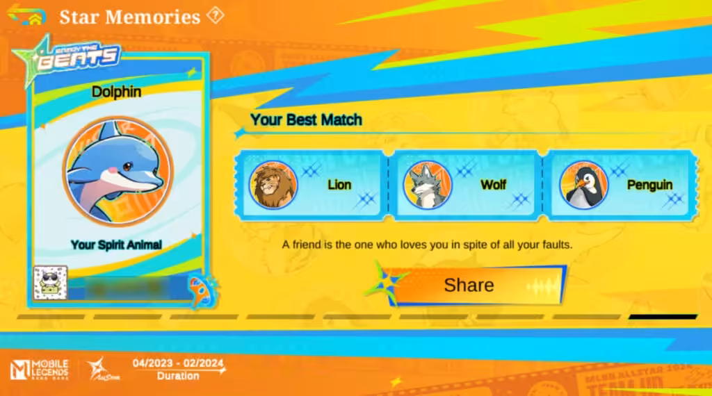 Untuk mengakses fitur ini pun terbilang sangat mudah. Kamu hanya perlu login ke game, lalu menekan ikon All Star, kemudian ketuk Star Memories. Setelahnya, sistem akan mengkalkulasikan semua statistik yang kamu miliki semenjak bulan April 2023, sampai dengan bulan April 2024, dengan memunculkan Spirit Animal yang sesuai.
