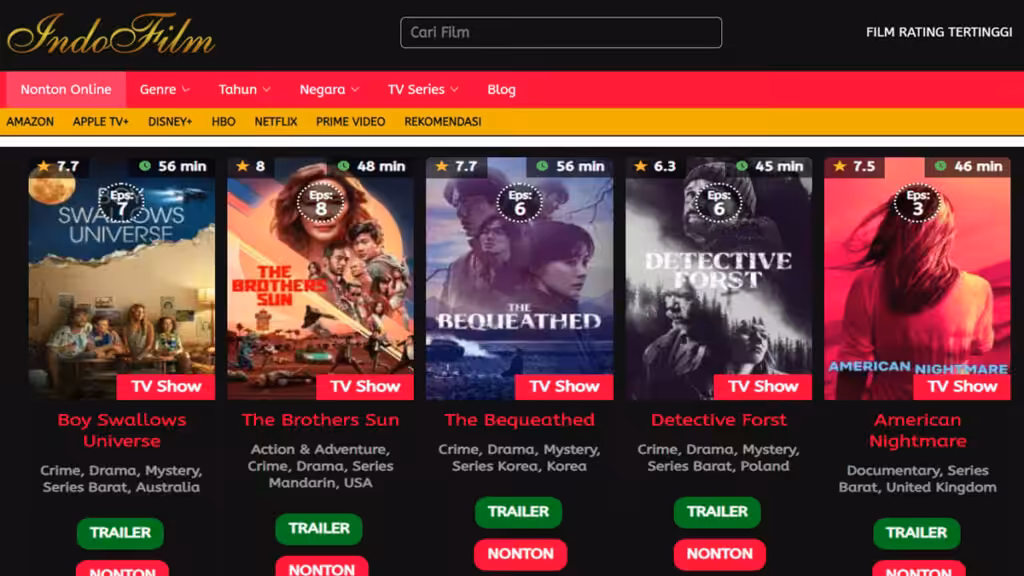 Link streaming lainnya selain situs Duniafilm21 adalah IndoFilm. Situs ini memiliki banyak film dan serial terbaru dari banyak negara yang lagi nge-trend.