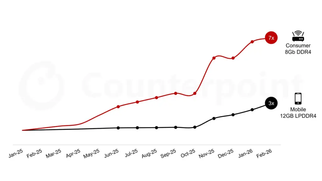 Berdasarkan laporan terbaru dari Counterpoint Research, alasan utama mengapa harga STB naik adalah karena kelangkaan consumer memory yang dialihkan secara besar-besaran untuk kebutuhan server AI. Data menunjukkan bahwa jika harga RAM smartphone naik 3 kali lipat, harga memori yang digunakan untuk produk broadband seperti router dan set-top box justru melonjak 7 kali lipat.