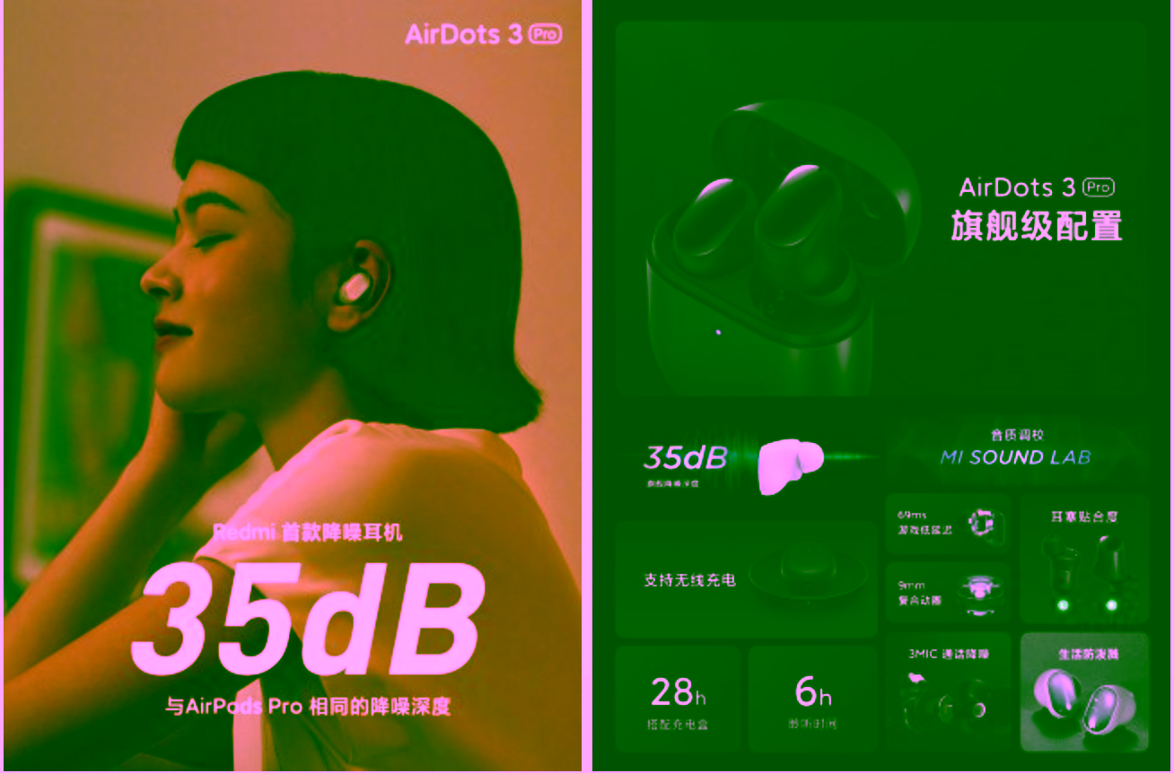 AirDots 3 Pro mengemas driver 9mm dan 3 mikrofon untuk pengambilan suara yang optimal dan peredam bising. Redmi mengklaim mode Auto Noice Canceling(ANC) dapat mengurangi kebisingan hingga 35dB. Untuk konetivitas, Redmi Airdots 3 Pro menggunakan Bluetooth 5.2 yang memungkinkan koneksi simultan ke dua perangkat terpisah.