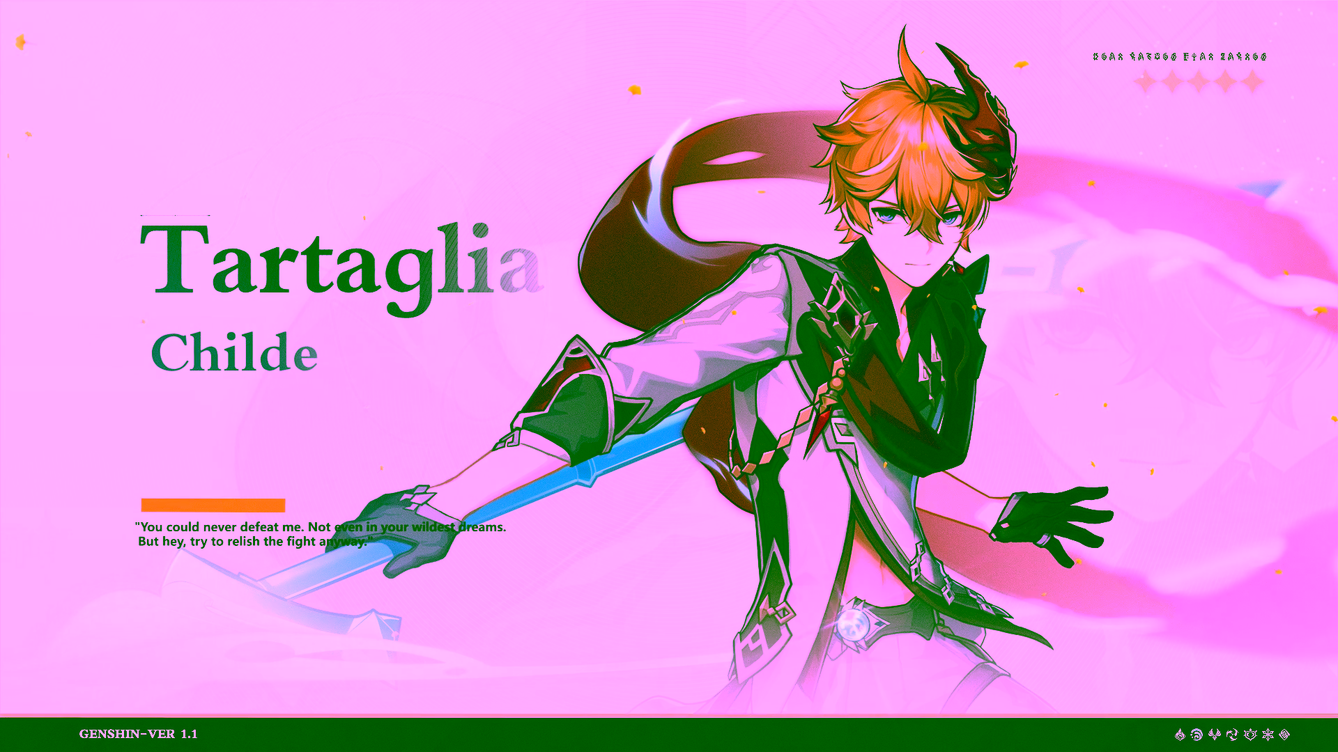 Empat karakter yang akan meramaikan versi 1.1 adalah Childe, Zhongli, Xinyan, dan Diona. Childe adalah karakter bintang lima yang bersenjatakan panah berelemen hydro atau air. Ia bisa berganti model serangan dari jarak jauh dan dekat seperti yang dipamerkan di adegan saat traveler pertamakali bertemu dengannya.