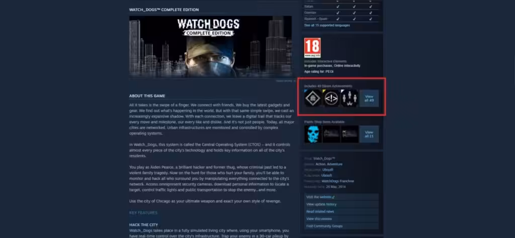 Seorang pengguna akun Reddit bernama Guinnea menemukan bahwa adanya update Watch Dogs dari tim developer Ubisoft di platform layanan Steam. Update tersebut berupa penambahan fitur achivement yang diberikan pada game ini yang bisa didapatkan oleh Player.