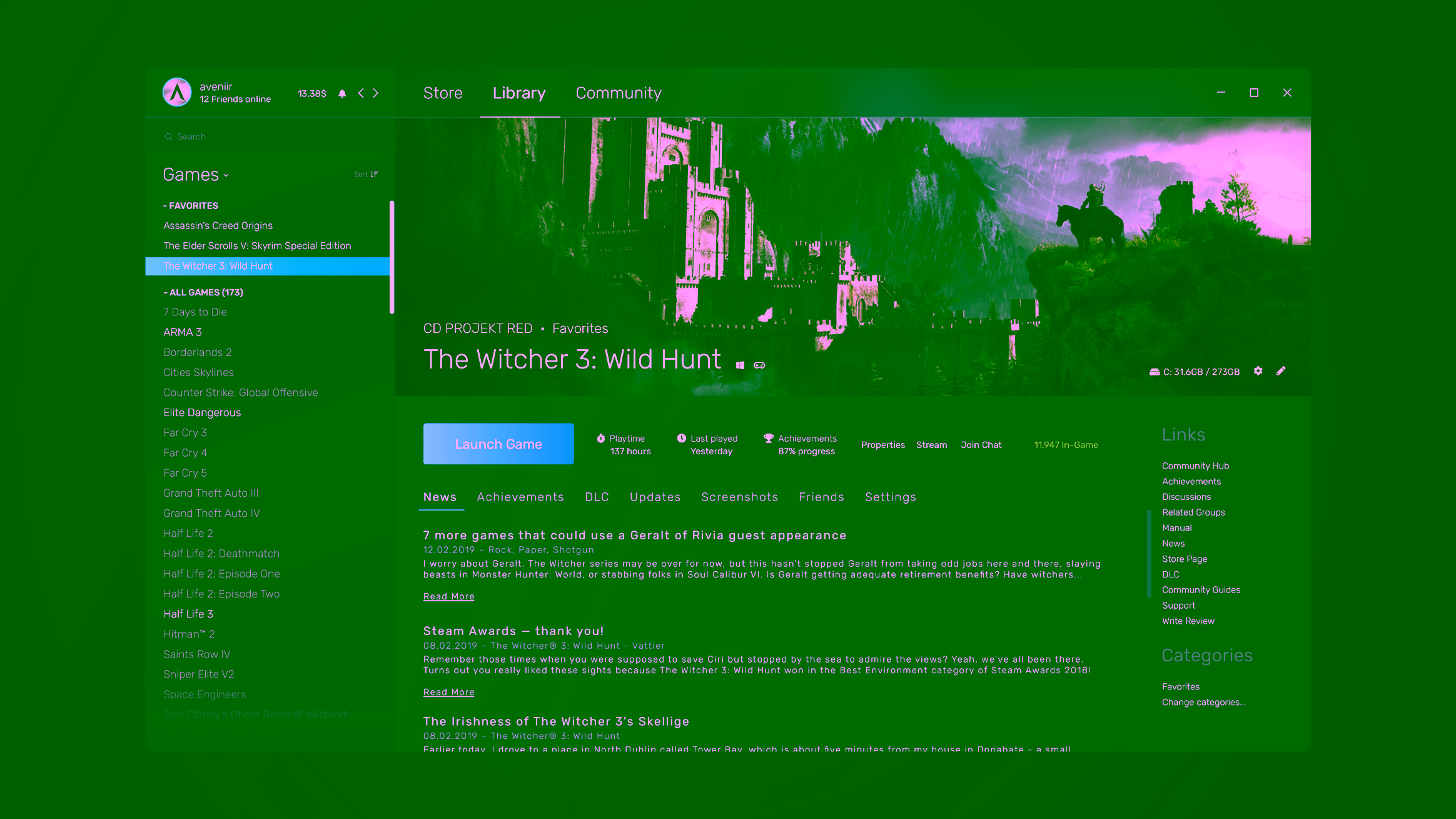 Tak perlu membutuhkan waktu lama bagi otak-otak kreatif reddit untuk merealisasikannya. inteNsE (gambar atas) misalnya yang mengambil dasar desain tersebut dan membuatnya dengan bentuk flat design. Sementara Aveniir (gambar bawah) mendesainnya dengan cukup berbeda dan nampak lebih nyaman dilihat karena ia hanya mengubah desain Steam saat ini agar terlihat lebih flat dan minimalis. Ia juga masukkan Half-Life 3 sebagai list game yang sangat diimpikan oleh para fans serinya.