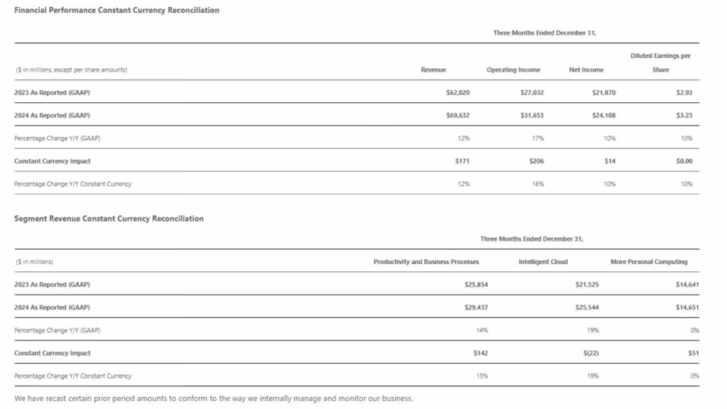 Kuartal pertama dalam tahun penuh tidak begitu menampilkan lompatan besar tahun-ke-tahun, dan ini karena akuisisi Microsoft terhadap Activision Blizzard King sudah dinormalisasi dalam hasil perusahaan dimana hal tersebut dihitung dalam Kuartal pertama tahun Fiskal 2025.