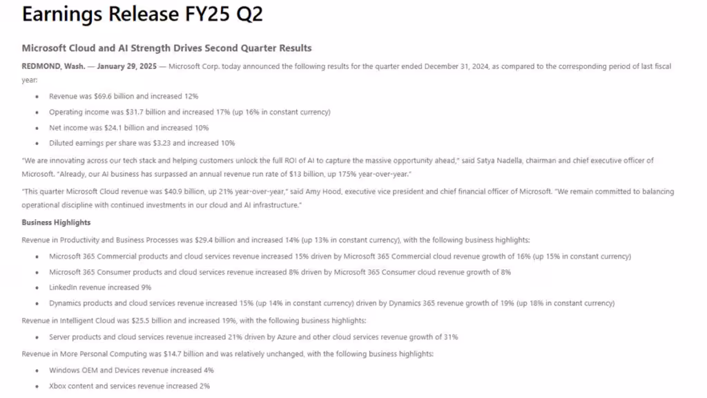 Pada laporan yang dibagikan oleh Microsoft, diketahui bahwa terdapat penurunan pendapatan sebesar 7% dari tahun-ke-tahun pada kuartal ke-2 tahun fiskal 2025. Namun dibalik itu, Sektor ini juga memiliki pendapatan yang meningkat.