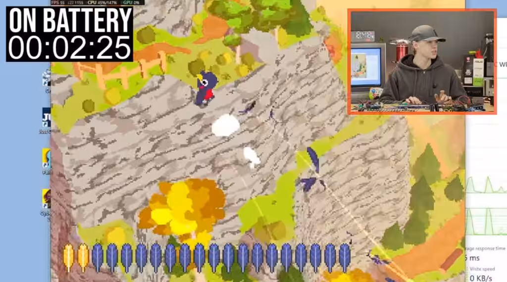 Tidak sekadar menyala sebentar, PC ini sanggup menyelesaikan tes benchmark Cinebench dengan skor yang sama persis saat menggunakan listrik rumah. Bahkan, PC bertenaga baterai AA ini masih kuat dipakai bermain game Minecraft dan A Short Hike sebelum akhirnya kehabisan daya. Secara total, rakitan baterai ini mampu menyokong PC tersebut selama 33 menit 19 detik, sebuah durasi yang sangat impresif untuk baterai AA.