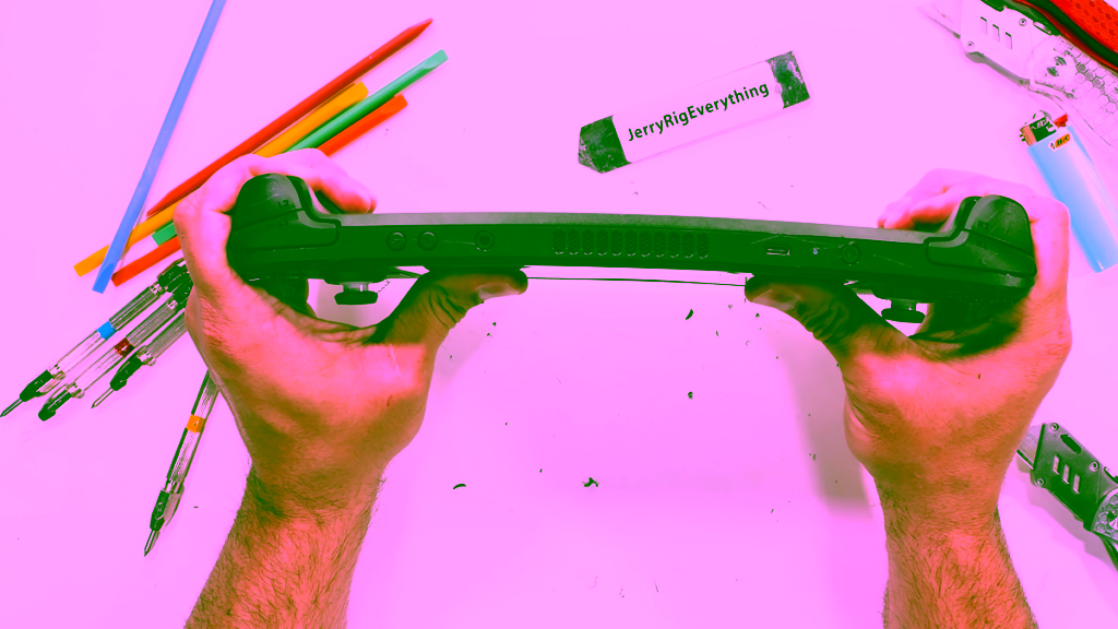 Tidak hanya membakar, Jerry juga mencoba membengkokkan Steam Deck hinga terlihat ingin patah dengan kekuatan orang dewasa. Namun, tidak terjadi kerusakan apapun kepada Game yang sedang dimainkannya, ataupun kesalahan pada Software akibat Hardware dibengkokkan.